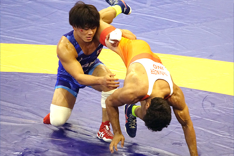 男子フリースタイル74㎏級に出場した青柳選手は、初戦から準々決勝までの3試合をすべてテクニカルスペリオリティで制し、圧倒的な強さで準決勝へ進出しました。準決勝ではアメリカの選手と対戦し、4-7で惜敗。気持ちを切り替えて臨んだ3位決定戦ではインド選手を8-2で下し、見事銅メダルを獲得しました。